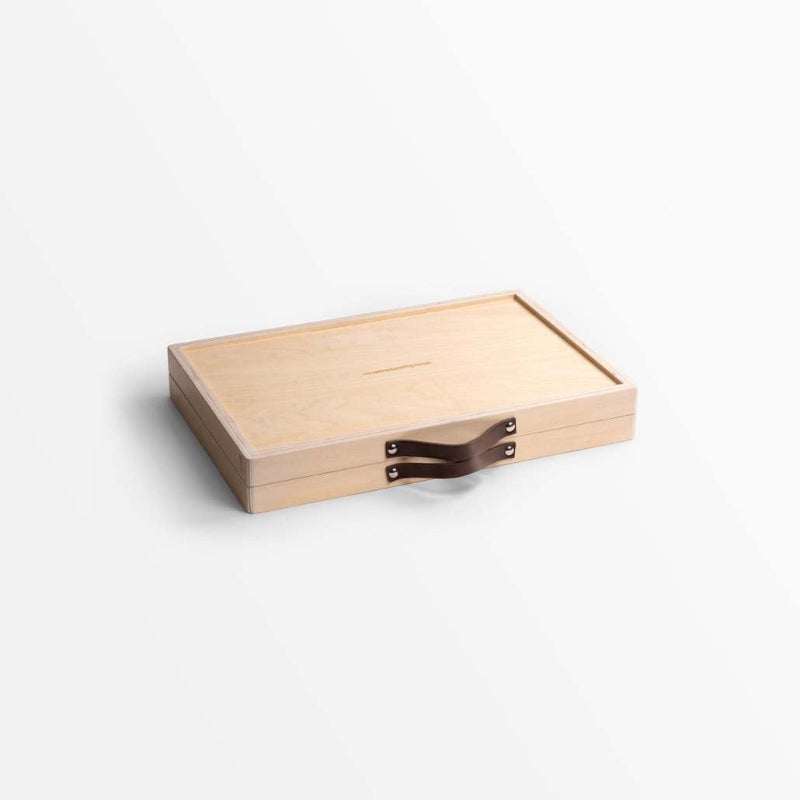 Our full size backgammon is crafted from beautiful linden plywood, a timber often used in guitars. Each set comes with leather carry straps, two leather dice cups, ivory and black backgammon stones, 5-piece dice set and easy to follow backgammon rules.