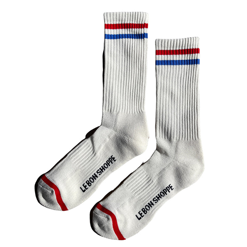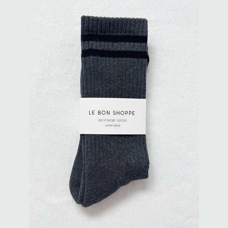Due to popular demand we created the Boyfriend Socks in extended sizing, which is unisex and men-friendly! They maintain the same design as our bestseller and signature style, Boyfriend Socks, with a slightly bigger foot and longer leg. Their classic, vintage-sporty vibe can be styled with all of any daytime look or worn as the perfect lounge sock to keep your feet comfy at all times.