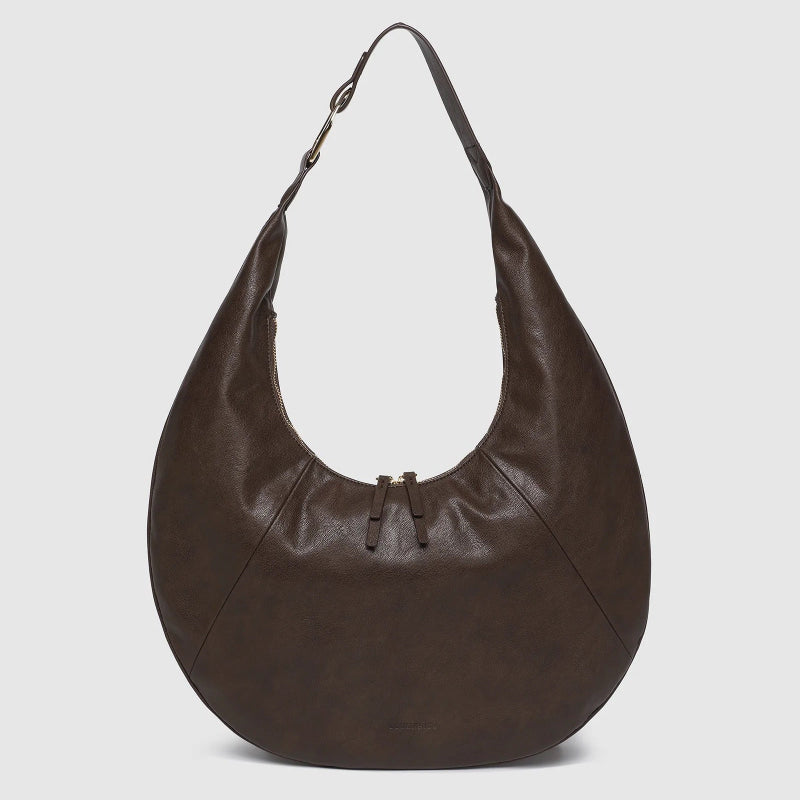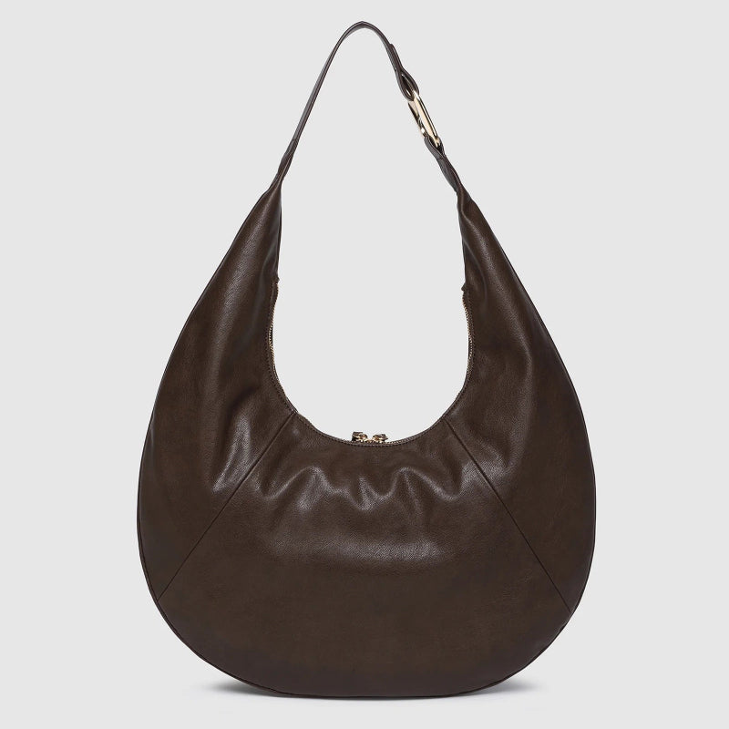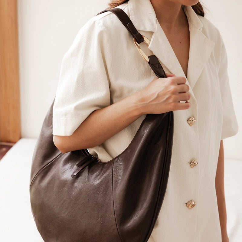 The Billie Chocolate Shoulder Bag is a softly sculpted crescent bag that brings effortless elegance to your everyday wardrobe. Designed in a slouchy silhouette with gentle curves and luxe gold hardware, Billie Chocolate embodies the laid-back polish of coastal escapes and sunset strolls.